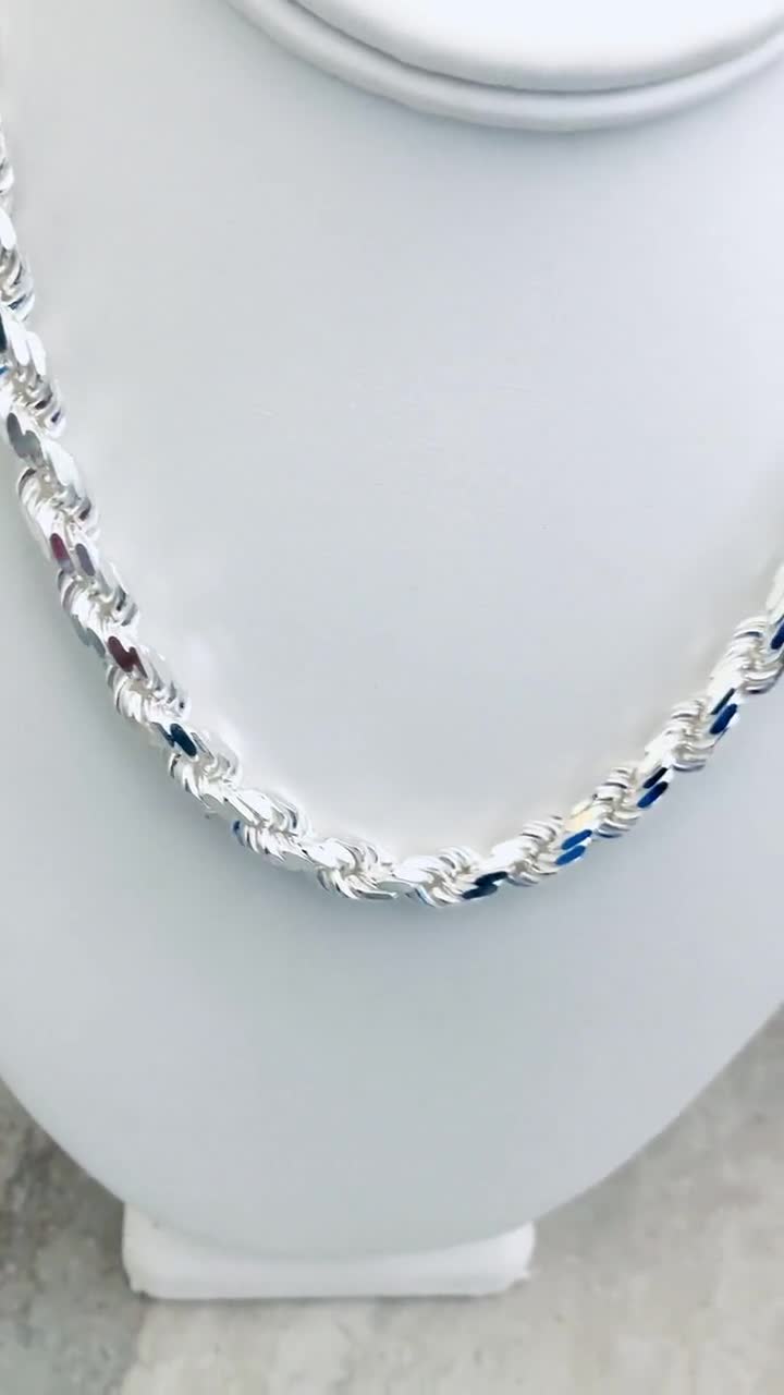 Diamond cut for a shiny and modern look. 925 Sterling Silver Rope Chain 18mm Chain Necklace 16 18 20 22 24 30 Diamond Cut Rope Chain Genuine Sterling Silver ROPE040.